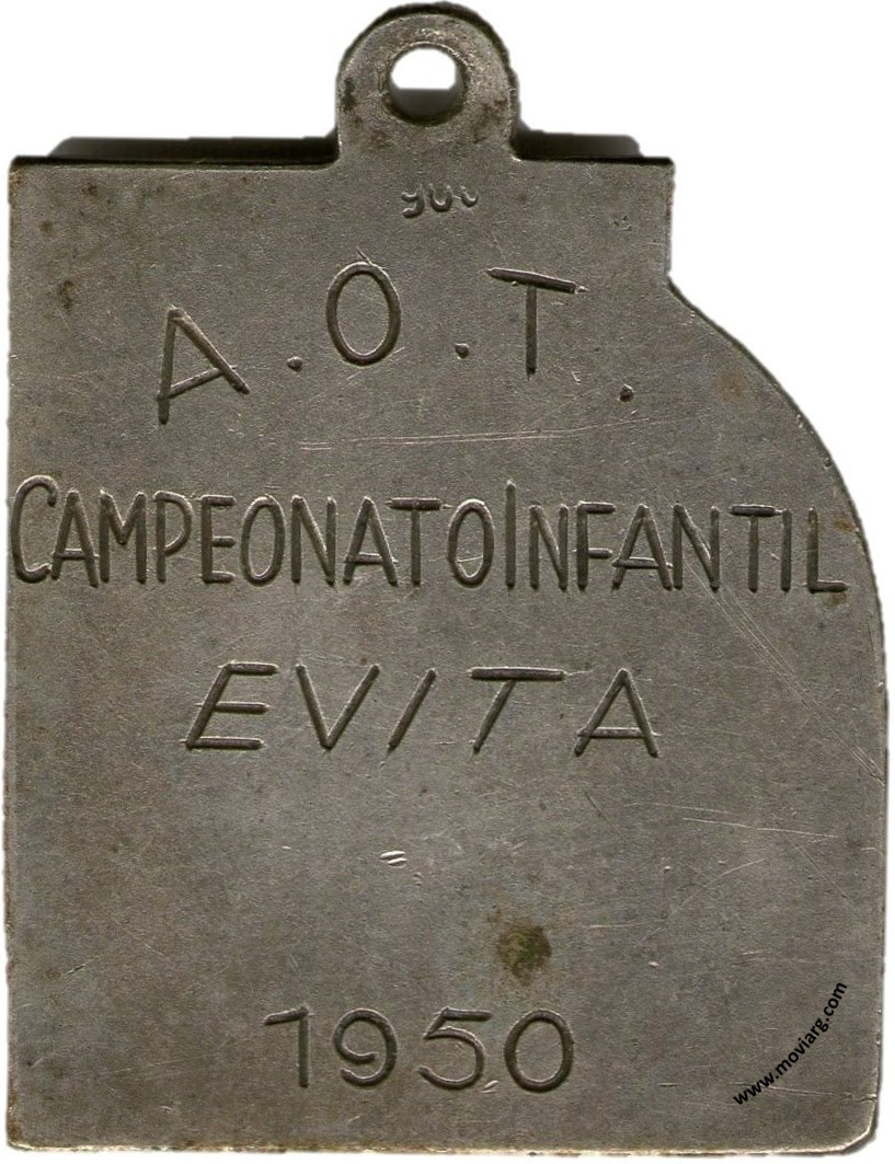 Anverso: Reverso: [ 900 ] / [ A. O. T. ] / [ CAMPEONATO INFANTIL ] / [ EVITA ] / [ 1950 ] Referencia: | |