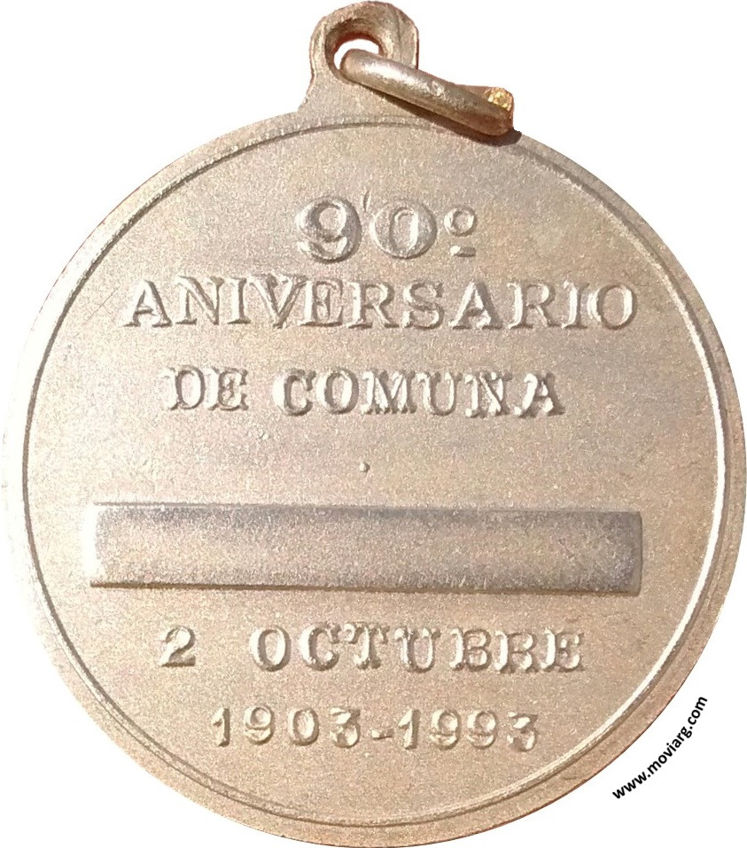 Anverso: COMUNA DE ALEJANDRA / STA. FE Reverso: 90° / ANIVERSARIO / DE COMUNA / 2 OCTUBRE / 1903 - 1993 Referencia: | |