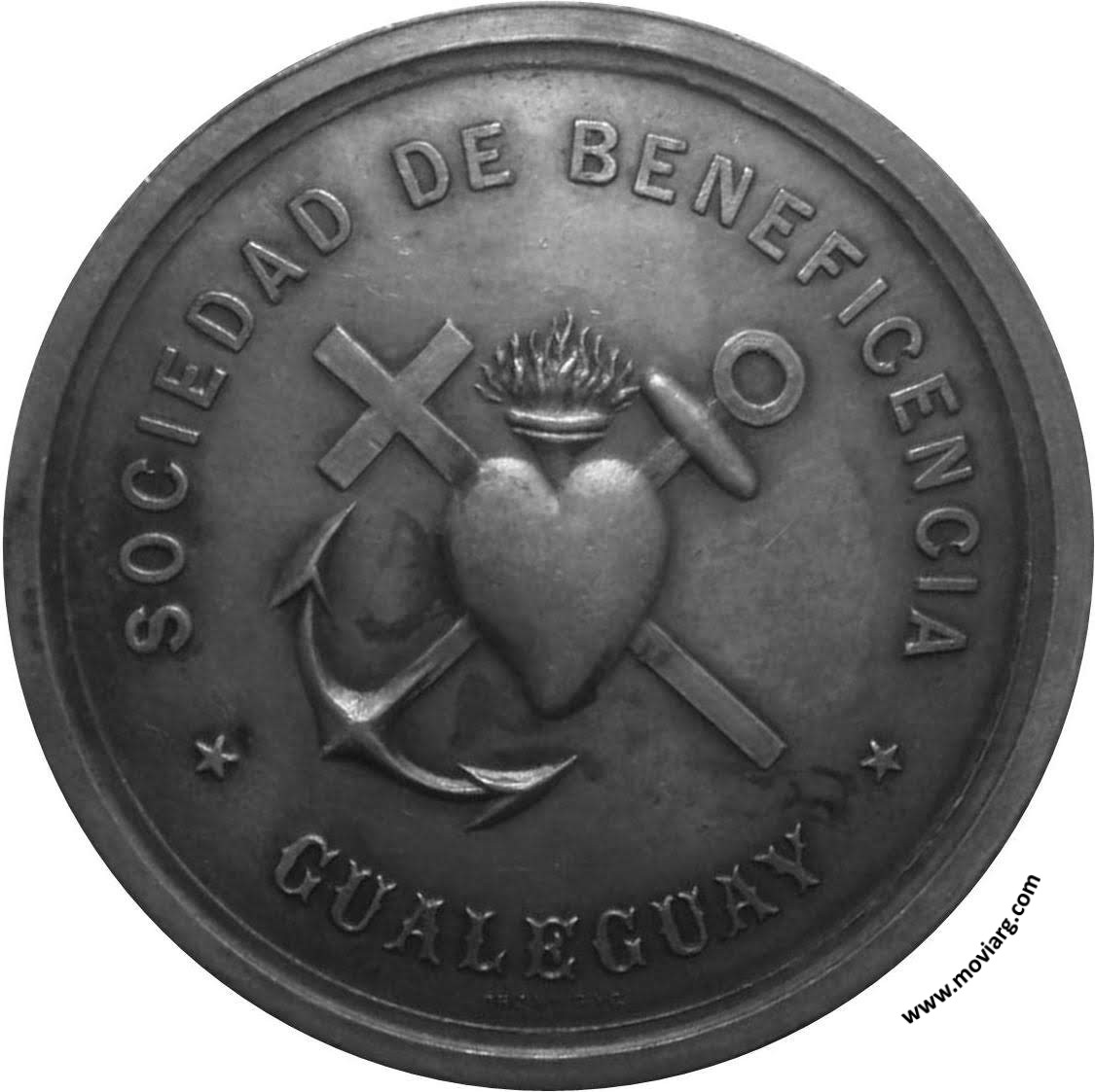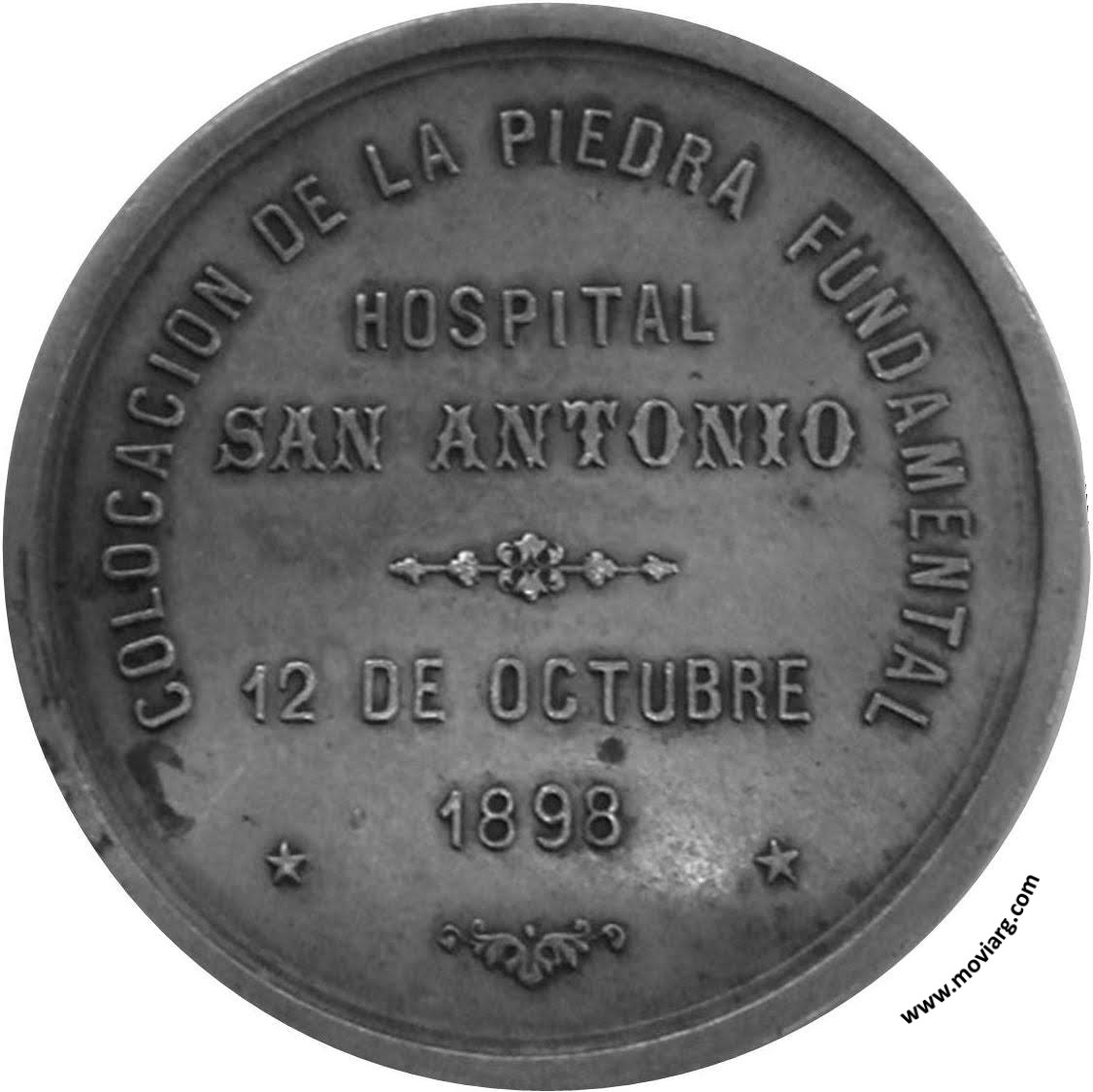 Anverso: SOCIEDAD DE BENEFICENCIA / GUALEGUAY. Firma: ORZALI B. Y C. Reverso: COLOCACION DE LA PIEDRA FUNDAMENTAL / HOSPITAL / SAN ANTONIO / 12 DE OCTUBRE / 1898 Referencia: | |