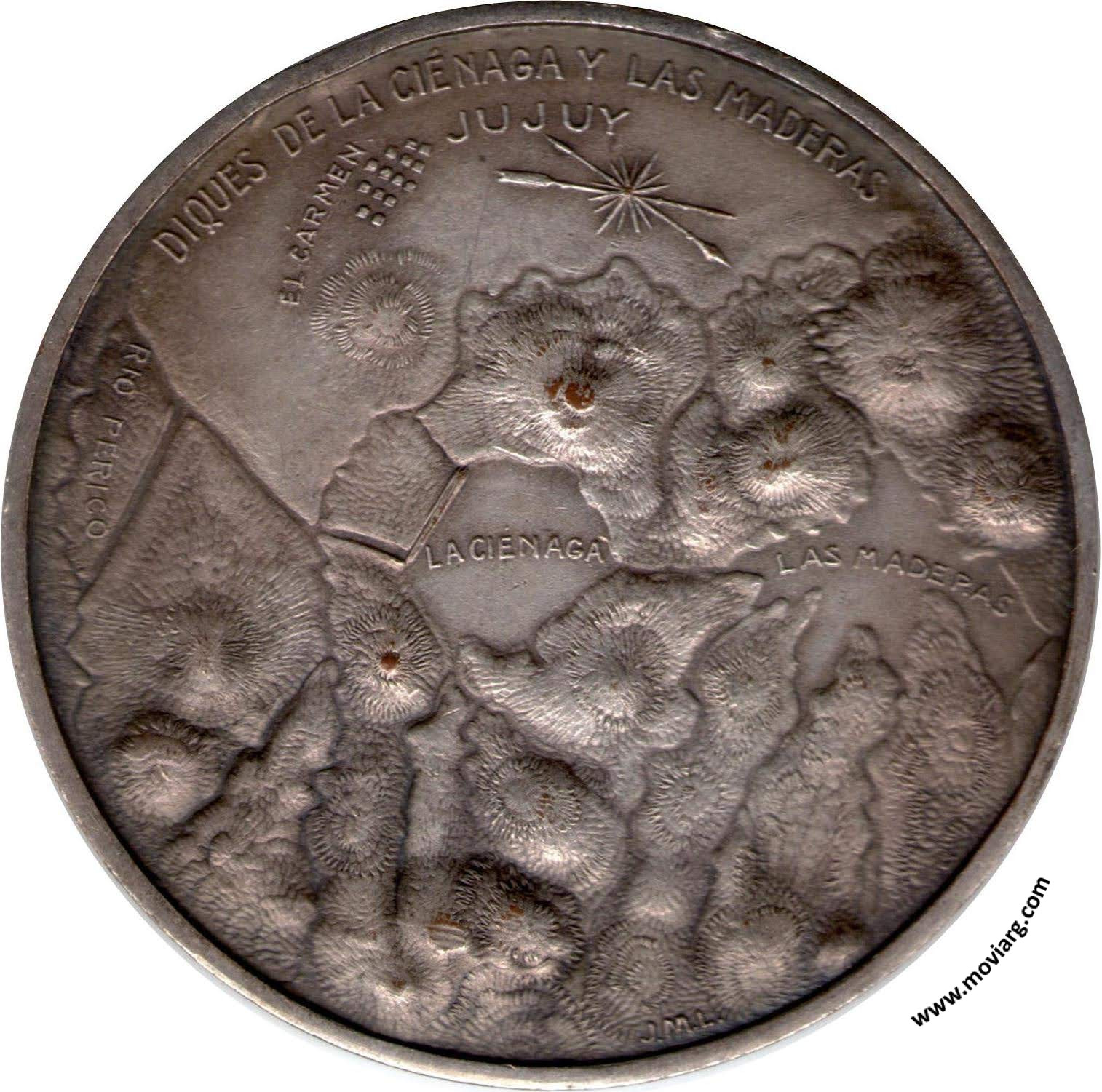 Anverso: DIQUES DE LA CIÉNADA Y LAS MADERAS / JUJUY. Campo: RIO PERICO / EL CÁRMEN / LA CIÉNAGA / LAS MADERAS. Firma: J.M.L. Reverso: PRESIDENTE DE LA NACIÓN / DR. ROQUE SÁENZ PEÑA / MINISTRO DE OBRAS PÚBLICAS / DR. EZEQUIEL RAMOS MEXIA / GOBERNADOR / SERGIO ALVARADO / 1911 Referencia: | |