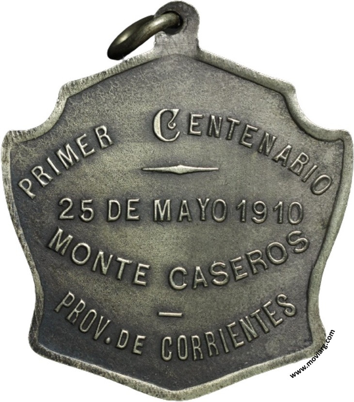 Anverso: 1810. Firma: C. Y AF. ROSSI Reverso: PRIMER CENTENARIO / 25 DE MAYO 1910 / MONTE CASEROS / PROV. DE CORRIENTES Referencia: | |