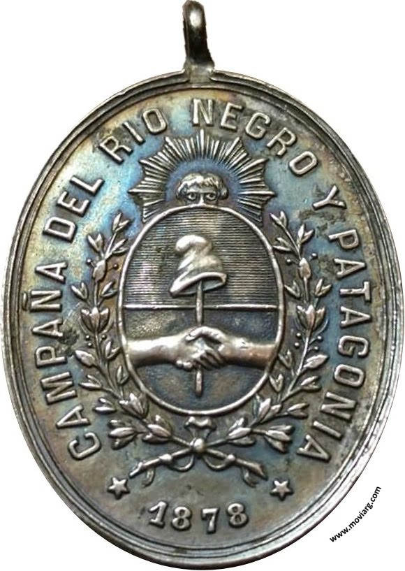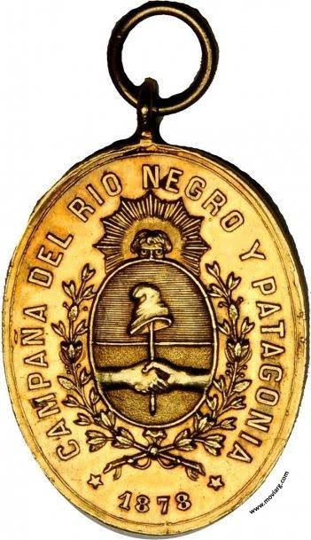 Anverso: CAMPAÑA DEL RIO NEGRO Y PATAGONIA / 1878 Reverso: LA NACION AL EJERCITO DEL SUD / 1881 Referencia: | |