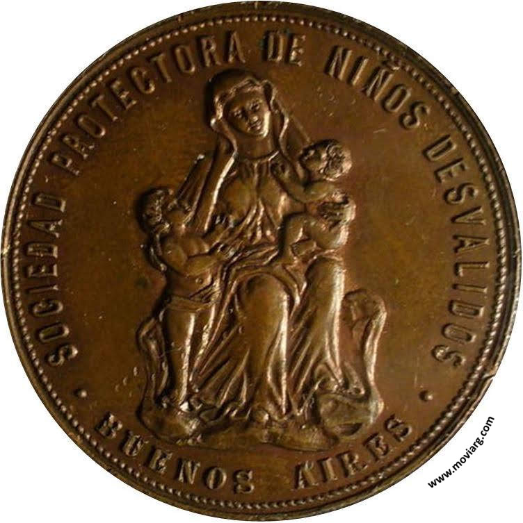 | Año: 1893 Protección Social, Patronatos, Asilos Metal: Cobre - Módulo: 38mm Grabador: Podestá y Hno. | |