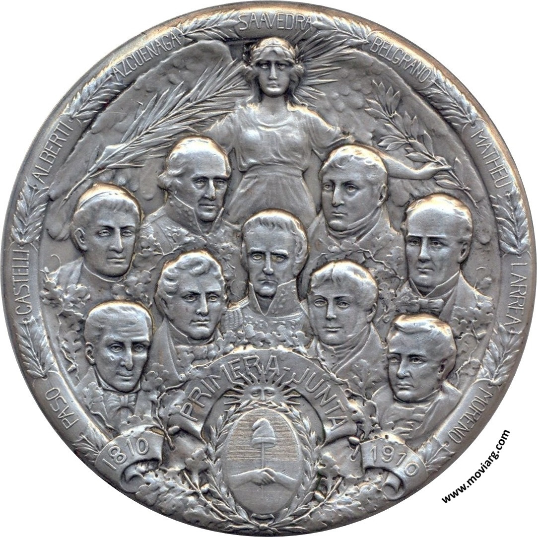 Anverso: 1810 / PRIMERA - JUNTA / 1910 / PASO CASTELLI ALBERTI AZCUENAGA SAAVEDRA BELGRANO MATHEU LARREA MORENO Reverso: LA MENTE INSPIRADA DE LOS MIEMBROS / DE LA JUNTA DE 1810 FORJÓ A LA LIBERTAD / LA NACION ARGENTINA / INDUSTRIAS AGRICULTURA COMERCIO PROGRESO NAVEGACION CIENCIAS ARTES. Firma: GOTTUZZO Y CA. Referencia: | |