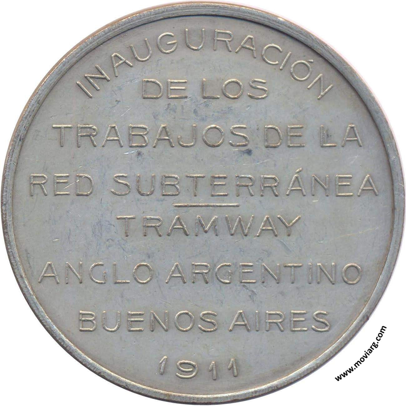 Anverso: Reverso: INAGURURACIÓN / DE LOS / TRABAJOS DE LA / RED SUBTERRÁNEA / TRAMWAY / ANGLO ARGENTINO / BUENOS AIRES / 1911 Referencia: | |