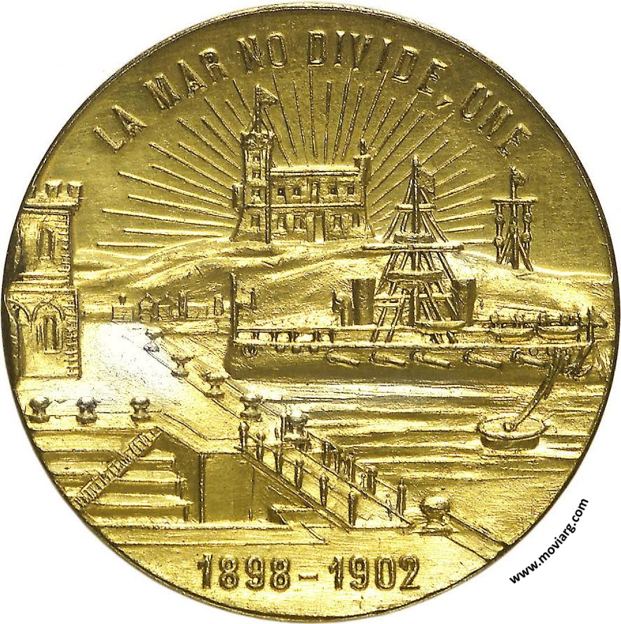 Anverso: INAUGURACION DEL DIQUE DE CARENA / MARZO 1902 / PUERTO / MILITAR Reverso: LA MAR NO DIVIDE, UNE / 1898 - 1902 Referencia: | |