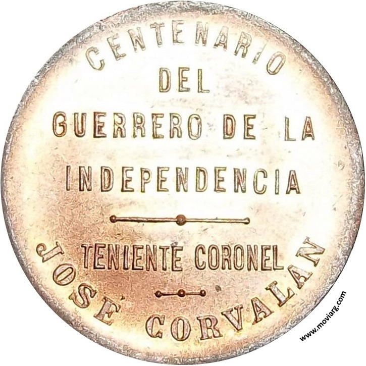 Anverso: 1802 - 1902 Reverso: CENTENARIO / DEL / GUERRERO DE LA / INDEPENDENCIA / TENIENTE CORONEL / JOSÉ CORVALAN Referencia: | |