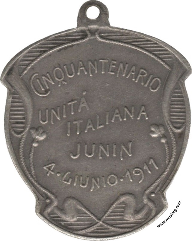 Anverso: Reverso: CINQUANTENARIO / UNITÁ / ITALIANA / JUNIN / 4 · GIUNIO (sic) · 1911 Referencia: | |