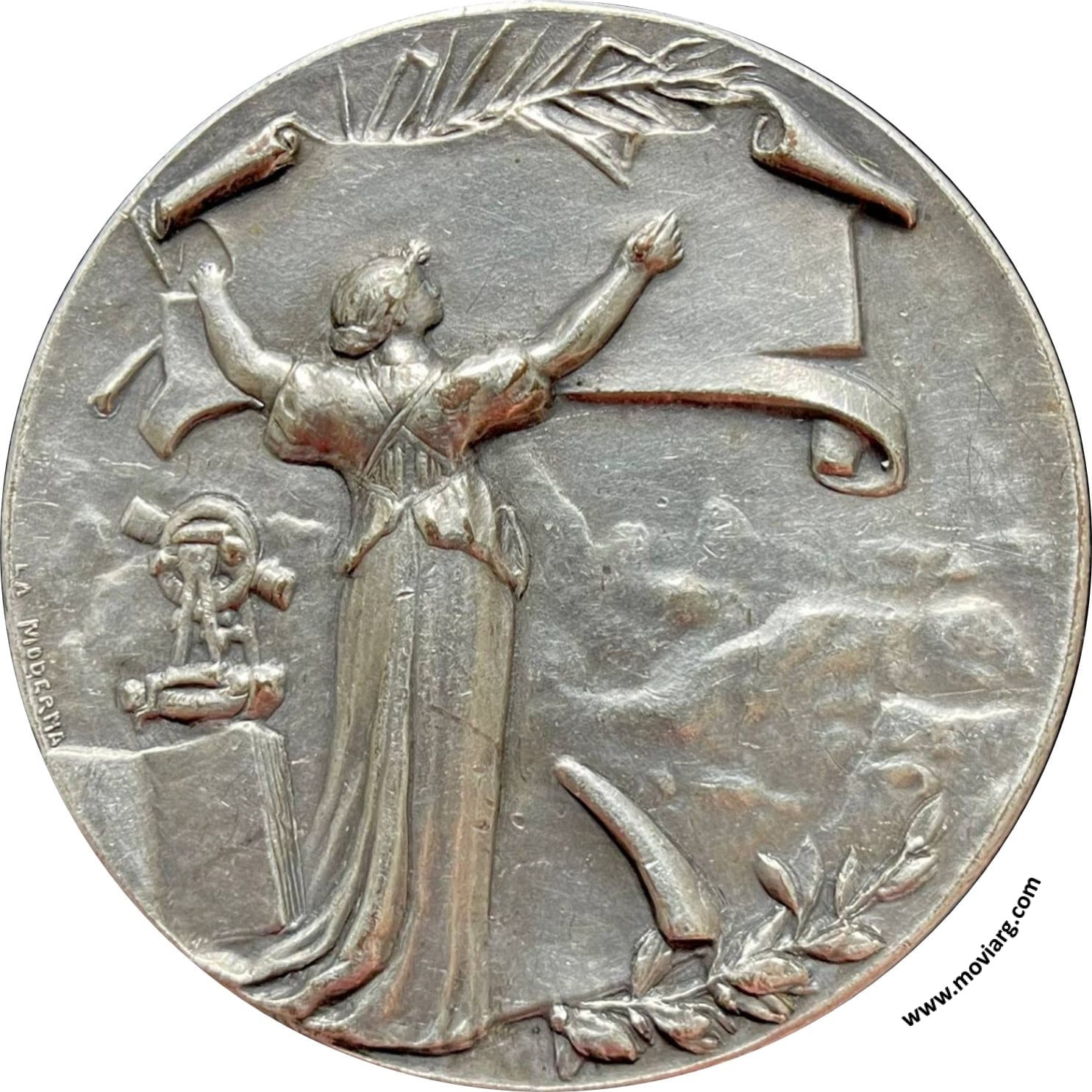 Anverso: Firma: LA MODERNA Reverso: LA MUNICIPALIDAD / DE / GUALEGUAYCHÚ / CONMEMORANDO / LA INAUGURACION / DE LAS OBRAS / DEL CANAL DE LA BOCA / JULIO DE 1904 Referencia: | |