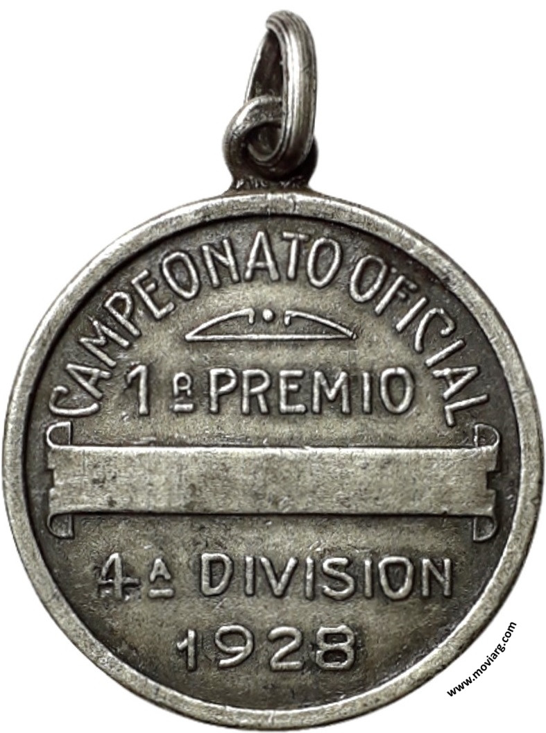 Anverso: FEDERACION ARGENTINA / DE / BASKET-BALL. Campo: F. A. B. B. Anilla: [ 1000 ] Reverso: CAMPEONATO OFICIAL / 1R. PREMIO / 4A. DIVISION / 1928 Referencia: | |