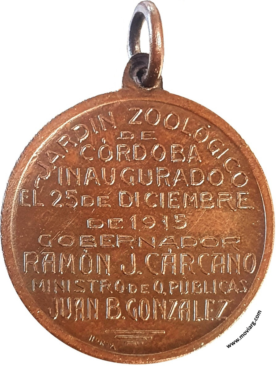 fb - P.V. Anverso:Reverso: JARDIN ZOOLÓGICO / DE / CÓRDOBA / INAUGURADO / EL 25 DE DICIEMBRE / DE 1915 / GOBERNADOR / RAMÓN J. CÁRCANO / MINISTRO DE O. PÚBLICAS / JUAN B. GONZALEZ. Firma: HORTA Referencia: | |