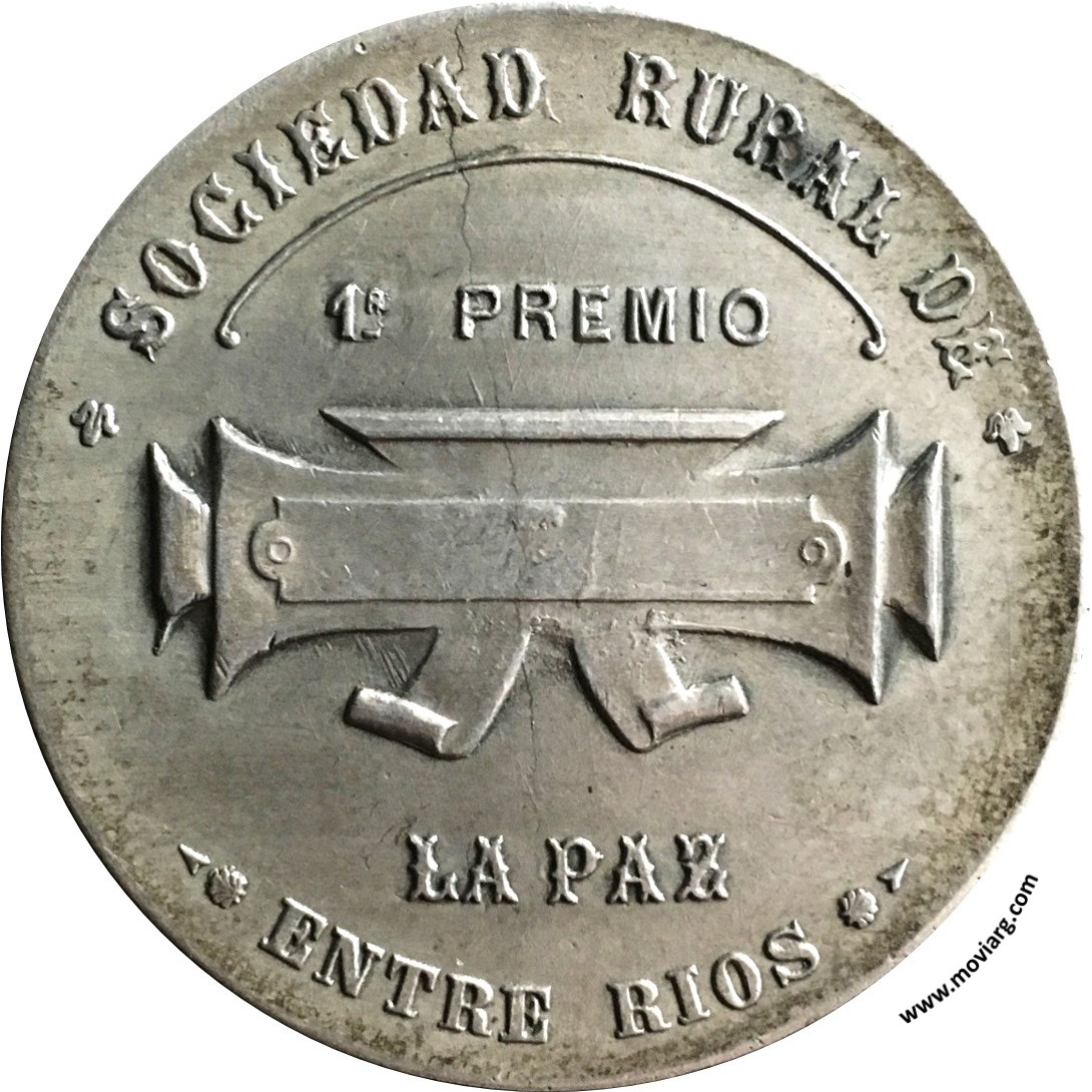 Anverso: 6A. EXPOSICIÓN FERIA / 9 DE OCTUBRE 1910 Reverso: SOCIEDAD RURAL DE / LA PAZ / ENTRE RIOS / 1° PREMIO Referencia: | |