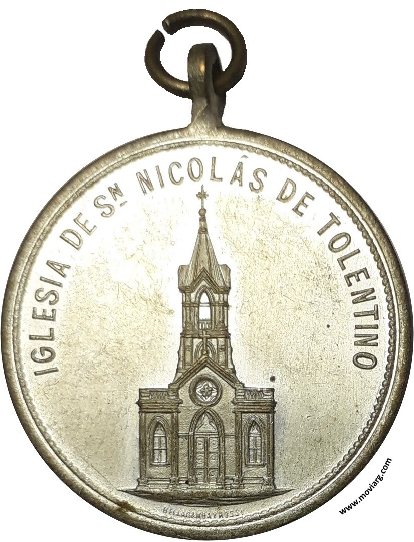 Anverso: IGLESIA DE SN. NICOLÁS DE TOLENTINO. Firma: BELLAGAMBA Y ROSSI Reverso: COSTEADA / POR LA SEÑORA / JUSTINA R. DE ALVAREZ / PARA SU PUEBLO / 27 ABRIL DE 1902 / ALVAREZ Referencia: | |