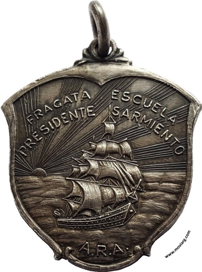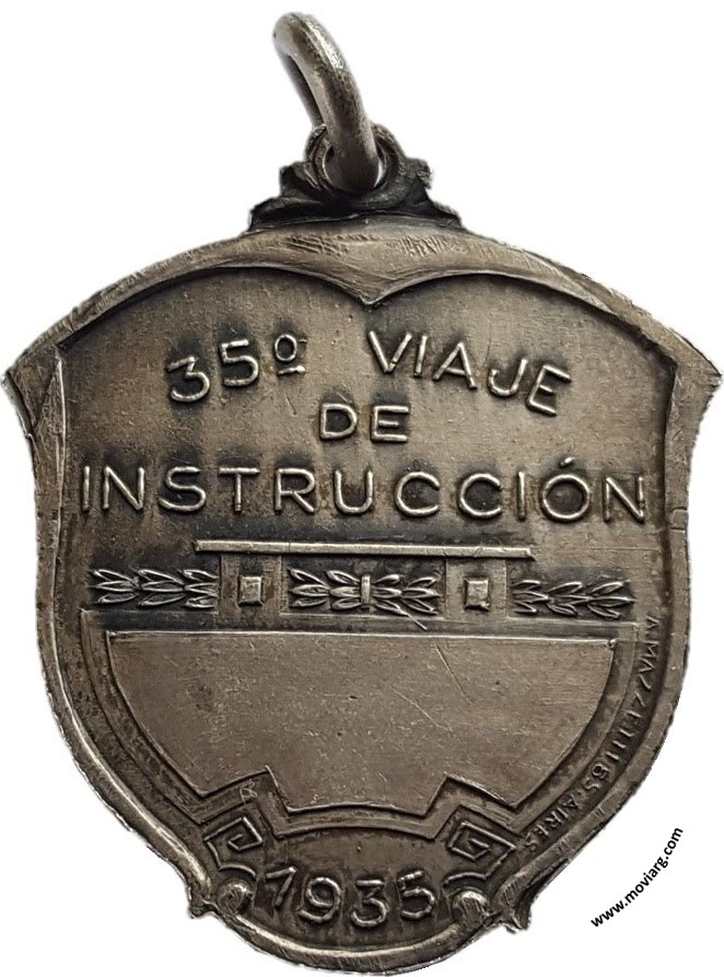 Anverso: FRAGATA ESCUELA / PRESIDENTE SARMIENTO / A.R.A. Reverso: 35° VIAJE / DE / INSTRUCCIÓN / 1935. Firma: A. MAZZETTI BS. AS. Referencia: | |