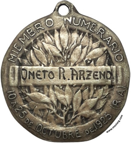 Anverso: SEGUNDO CONGRESO ODONTOLÓGICO LATINO-AMERICANO / BUENOS AIRES. Campo: FEDERACION ODONTOLOGICA LATINO AMERICANA Reverso: MIEMBRO NUMERARIO / [ ONETO R. ARZENO ] / 10 A 25 DE OCTUBRE DE 1925 (R.A.) Referencia: | |