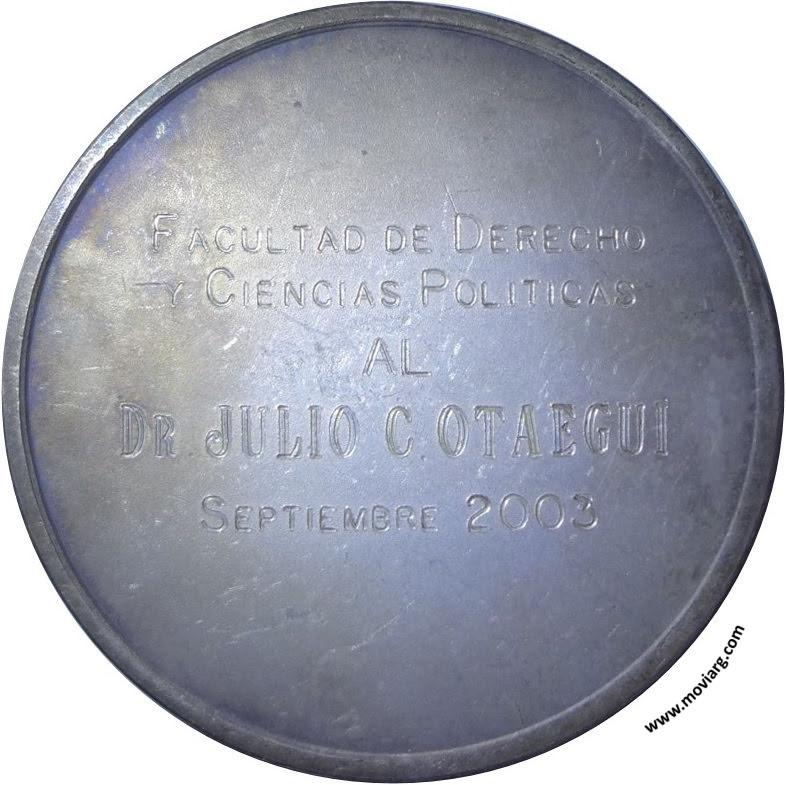 Anverso: UNIVERSIDAD CATOLICA ARGENTINA / S M / B A Reverso: [ FACULTAD DE DERECHO ] / [ Y CIENCIAS POLITICAS ] / [ AL ] / [ DR. JULIO C. OTAEGUI ] / [ SEPTIEMBRE 2003 ] Canto: Liso Referencia: | |