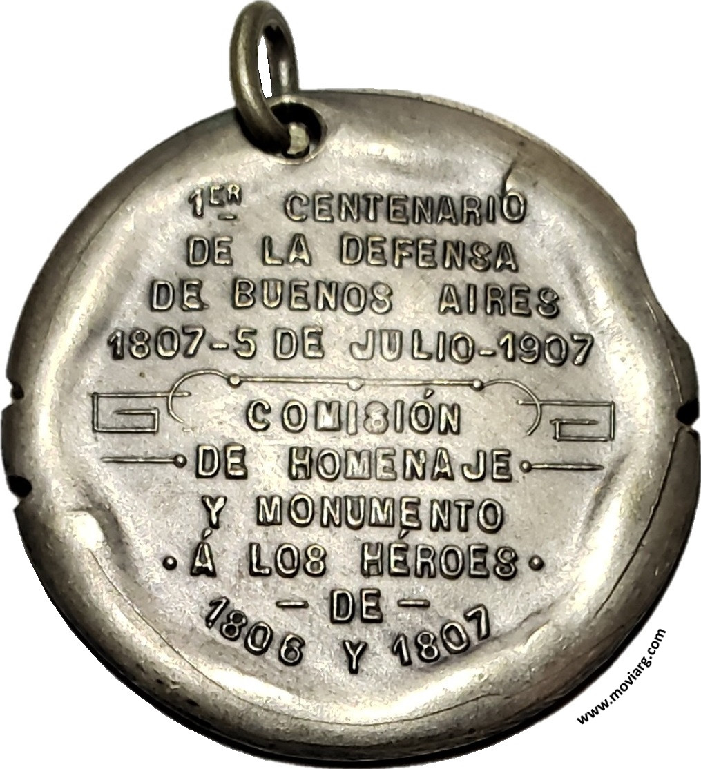 Anverso: Firma: BELLAGAMBA Y ROSSI Reverso: 1ER. CENTENARIO / DE LA DEFENSA / DE BUENOS AIRES / 1807 - 5 DE JULIO - 1907 / COMISIÓN / DE HOMENAJE / Y MONUMENTO / Á LOS HÉROES / DE / 1806 Y 1807 Referencia: | |