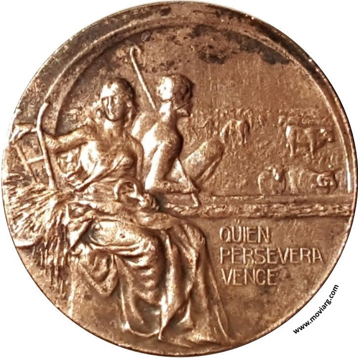 Anverso: QUIEN / PERSEVERA / VENCE Reverso: EL GOBIERNO DE LA PROVINCIA DE ENTRE RIOS / EXPOSICION FERIA / GUALEGUAYCHU / 12 OCTUBRE / 1908. Firma: GOTTUZZO Y CA. Referencia: | |