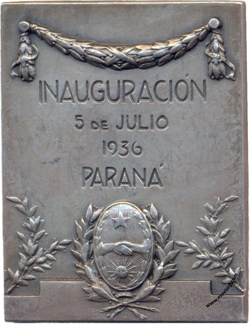 Anverso: MUSEO DE ENTRE RIOS / INSTITUTO / MARTINIANO LEGUIZAMON Reverso: INAUGURACIÓN / 5 DE JULIO / 1936 / PARANÁ. Firma: GOTTUZZO Y PIANA Referencia: | |