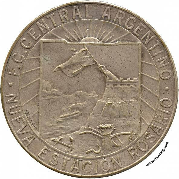 Anverso: F.C. CENTRAL ARGENTINO / NUEVA ESTACIÓN ROSARIO. Firma: J. M. LUBARY Reverso: EL PRESIDENTE / DE LA NACION / DR. MARCELO T. DE ALVEAR / COLOCA LA PIEDRA / FUNDAMENTAL / 4 DE OCTUBRE / MCMXXV / CORDOBA / TUCUMAN / SANTIAGO / SANTA-FE / BUENOS AIRES / ROSARIO Referencia: | |