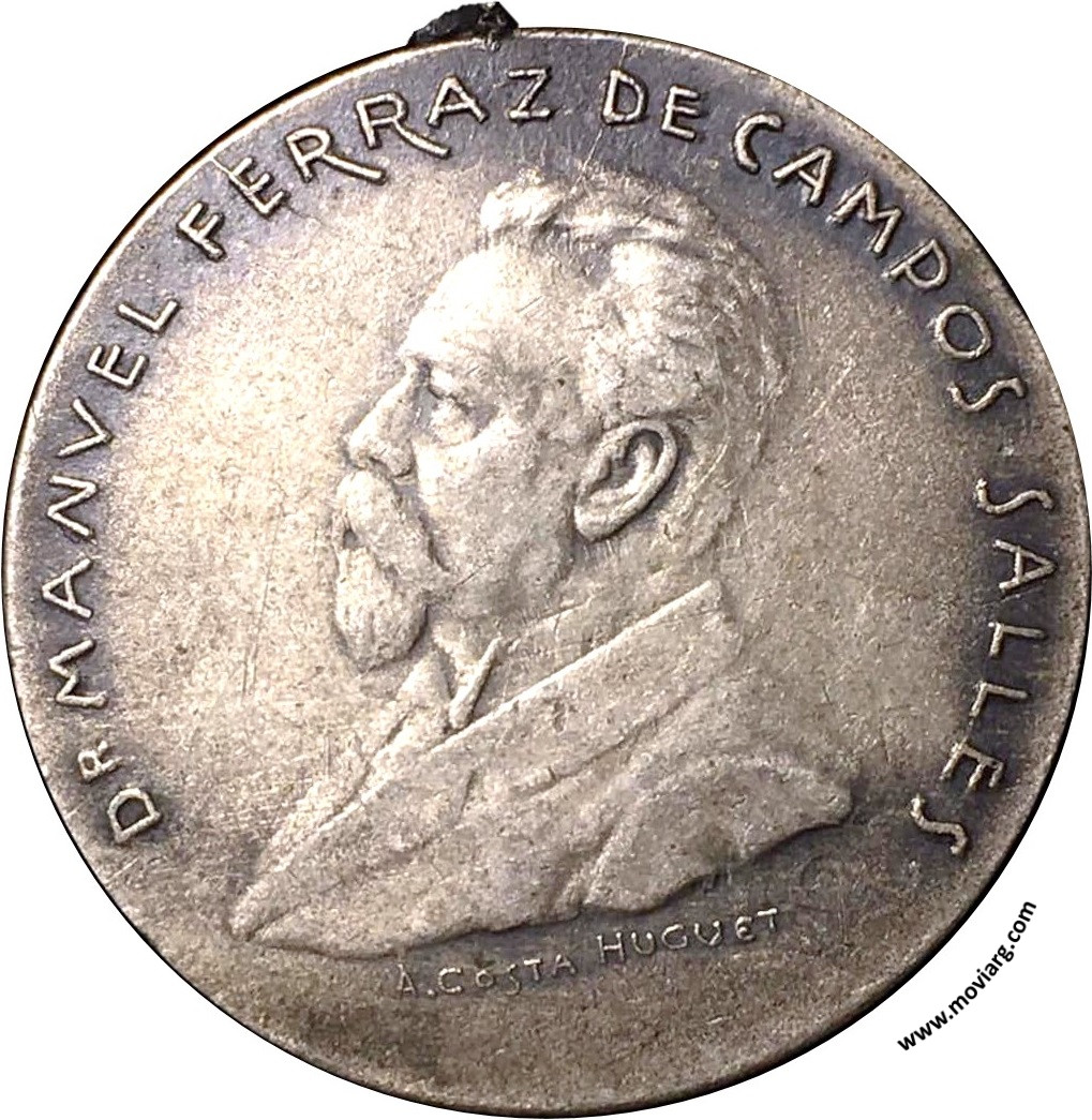 Anverso: DR. MANUEL FERRAZ DE CAMPOS SALLES. Firma: A. COSTA HUGUET Reverso: VISITA DEL EXMO. PRESIDENTE / DE LA REPÚBLICA / DE LOS / ESTADOS UNIDOS / DEL / BRAZIL / BS. AIRES / OCTUBRE 1900 Referencia: | |