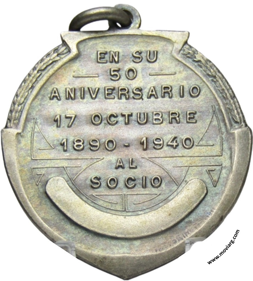Anverso: ASOCIACION FILANTROPICA / " LA ARGENTINA ". Firma: PASTORINO Y SALA Reverso: EN SU / 50 / ANIVERSARIO / 17 OCTUBRE / 1890 - 1940 / AL / SOCIO. Firma: PASTORINO Y SALA Referencia: | |