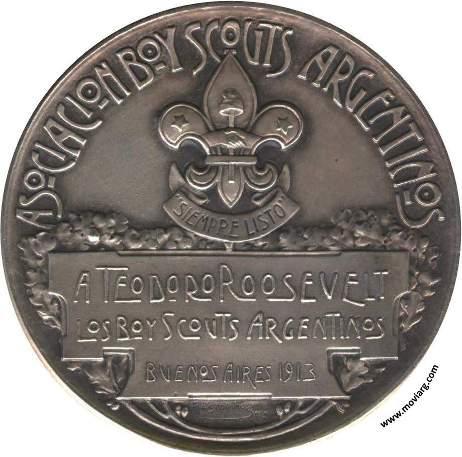 Anverso: EL TAMBOR DE TACUARY / "SIEMPRE LISTO" Reverso: ASOCIACION BOY SCOUTS ARGENTINOS / A TEODORO ROOSEVELT / LOS BOYS SCOUTS ARGENTINOS / BUENOS AIRES 1913. Campo: "SIEMPRE LISTO". Firma: PASTORINO Y SALA Referencia: | |