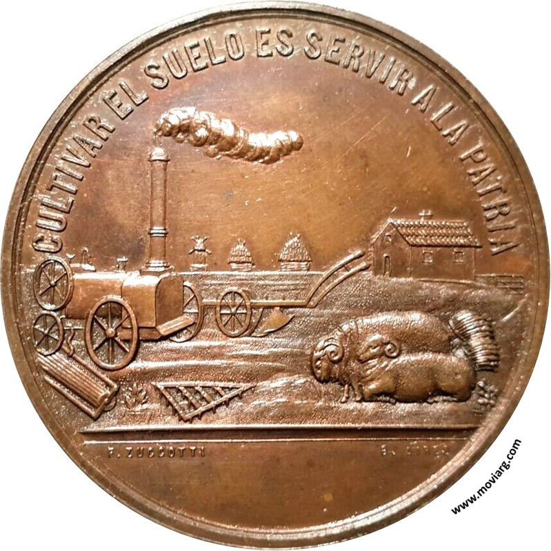 Anverso: CULTIVAR EL SUELO ES SERVIR A LA PATRIA. Firma: F. ZUCCOTTI / B. AIRES Reverso: SOCIEDAD RURAL ARGENTINA / BUENOS AIRES / EXPOSICION / DE 1881 Referencia: BURZIO-1266 | |