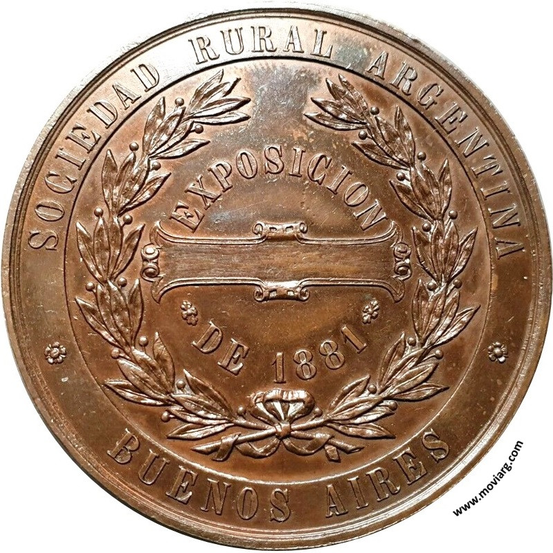 | Año: 1881 Exposiciones Metal: Cobre - Peso: 51.42gr - Módulo: 49.71mm - Espesor: 3.33mm - Rotación: 12hrs Grabador: Fabricio Zuccotti | |