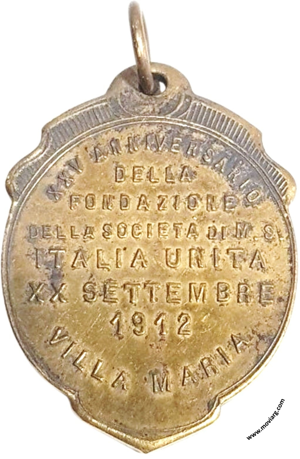 Anverso: L' ITALIA A TRIPOLI 5 OTT - 911 Reverso: XXV ANNIVERSARIO / DELLA / FONDAZIONE / DELLA SOCIETA DI M.S. / ITALIA UNITA / XX SETTEMBRE / 1912 / VILLA MARIA Referencia: | |