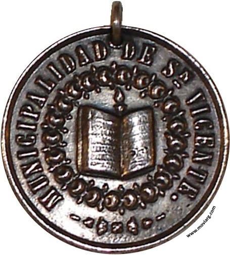 Anverso: MUNICIPALIDAD DE SN. VICENTE. Reverso: PREMIO / A LA / APLICACION / 1864 Referencia: | |