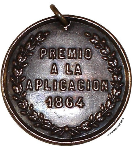 | Año: 1864 Premio al Mérito y Aplicación Metal: Plata - Módulo: 31mm Grabador: (Pablo Cataldi) | |