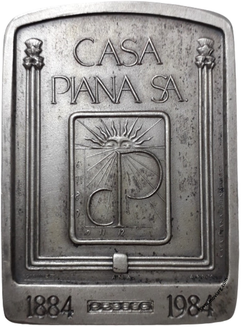 Colección MDS Anverso: CENTENARIO. Campo: GIA / NNE / TTIReverso: CASA / PIANA SA. / 1884 / 1984. Firma: GIANNETTI / A.N.A. / A.A.N.M. / CASA PIANA - BUENOS AIRES Canto: Liso. [ 141/300 ] Referencia: | |