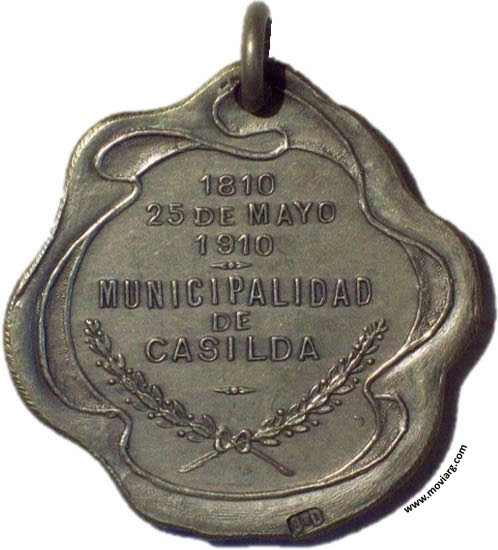 Anverso: SEAN ETERNOS LOS LAURELES QUE SUPIMOS CONSEGUIR Reverso: 1810 / 25 DE MAYO / 1910 / MUNICIPALIDAD / DE / CASILDA. Exergo: [ 9·D ] Referencia: | |