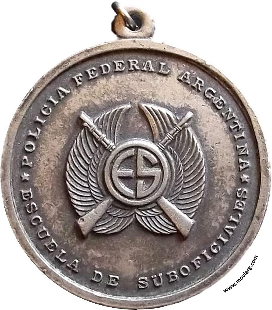 Anverso: POLICIA FEDERAL ARGENTINA / ESCUELA DE SUBOFICIALES. Campo: E.S. Reverso: Campo: [ ALPACA ] Referencia: | |