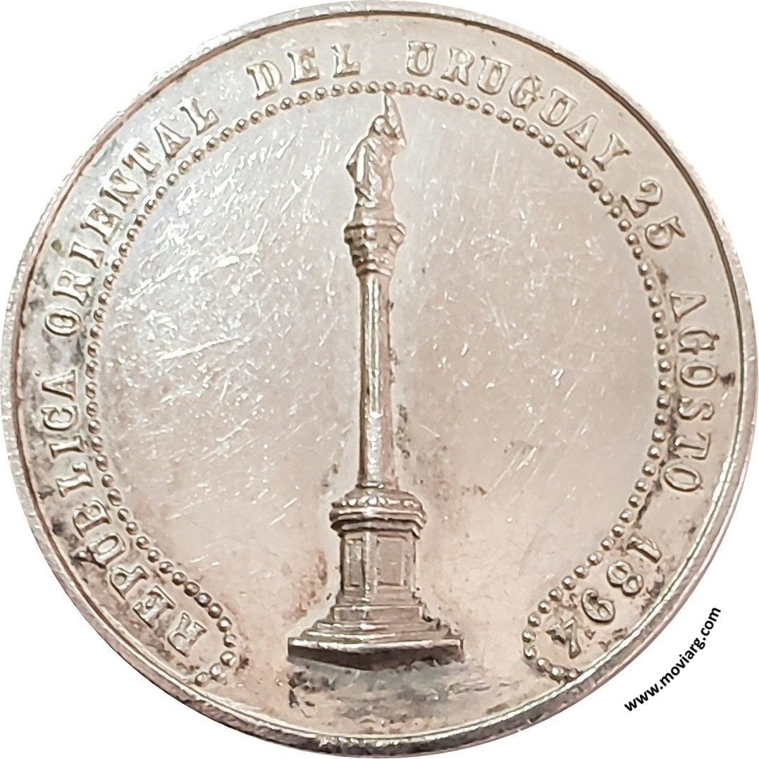 | Año: 1894 Uruguay Metal: Plata - Peso: 16.95gr - Módulo: 32.48mm - Espesor: 2.58mm - Rotación: 12hrs Grabador: Rosario Grande | |
