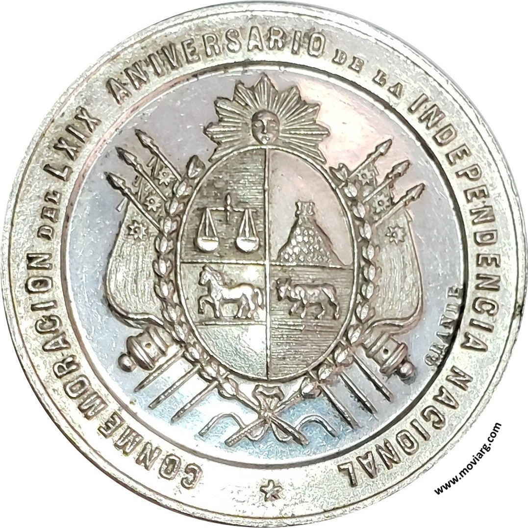 Anverso: REPUBLICA ORIENTAL DEL URUGUAY 25 AGOSTO 1894 Reverso: CONMEMORACION DEL LXIX ANIVERSARIO DE LA INDEPENDENCIA NACIONAL. Firma: GRANDE Canto: Liso Referencia: FERRARI-244 (RG) | |