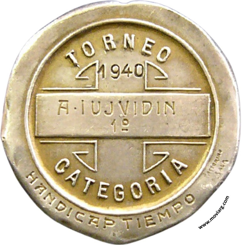 Anverso: CIRCULO DE AJEDREZ DE VELEZ-SARSFIELD / BS. AS. Firma: PASTORINO Y SALA Reverso: TORNEO / [ 1940 ] / [ A · IUJVIDIN ] / [ 1° ] / CATEGORIA / [ HANDICAP TIEMPO ]. Firma: PASTORINO / Y SALA Referencia: | |