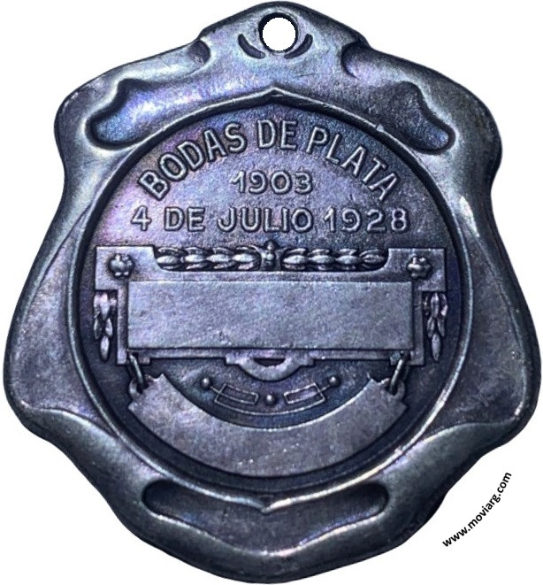 Colección Magnin Anverso: CENTRO UNION VIAJANTES / BUENOS AIRES. Firma: CONSTANTE ROSSIReverso: BODAS DE PLATA / 1903 / 4 DE JULIO 1928 Referencia: | |