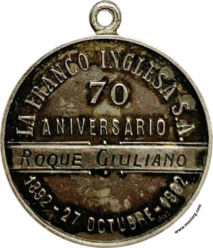 Anverso: SOL LUCET OMNIBUS Reverso: LA FRANCO INGLESA S.A. / 70 / ANIVERSARIO / [ ROQUE GIULIANO ] / 1892 - 27 OCTUBRE - 1962 Referencia: | |