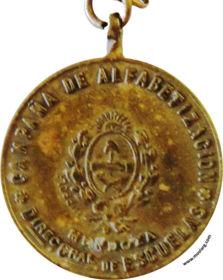 Anverso: CAMPAÑA DE ALFABETIZACION / MENDOZA / DIREC. GRAL. DE ESCUELAS. Firma: (???) PPOLI Reverso: YO / HE RESCATADO / UN ANALFABETO / AÑO 1938 Referencia: | |