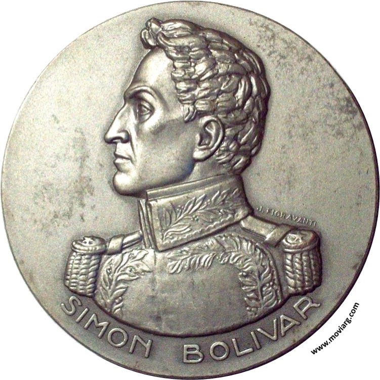 Anverso: SIMON BOLIVAR. Firma: J. FIORAVANTI Reverso: COMISION NACIONAL DE HOMENAJE / A / SIMON BOLIVAR / EN EL BICENTENARIO / DE SU NACIMIENTO / 1783 - 24 - VII - 1983 / REPUBLICA ARGENTINA Referencia: | |