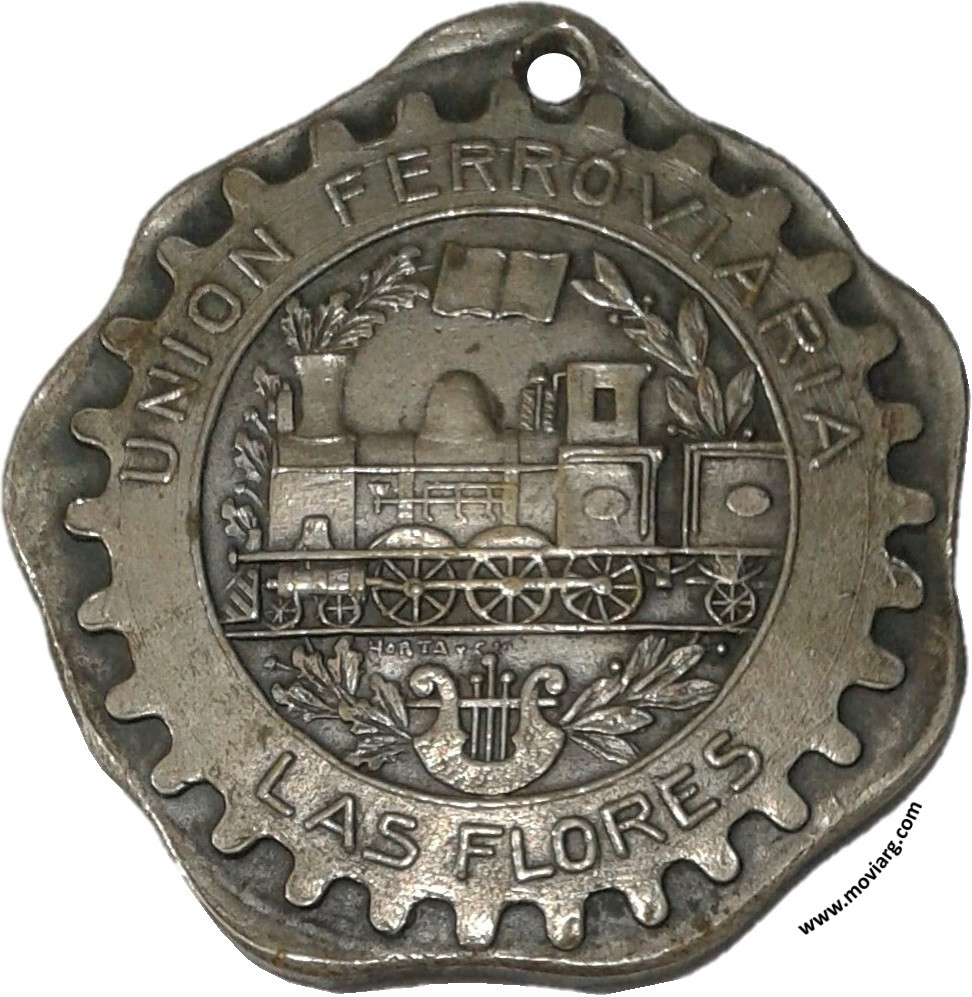 Anverso: UNION FERROVIARIA / LAS FLORES. Firma: HORTA Y CIA. Reverso: FUNDADA EL 30 DE AGOSTO DE 1903 / 1907 / COMMEMORANDO (sic) / SU / ANIVERSARIO Referencia: | |
