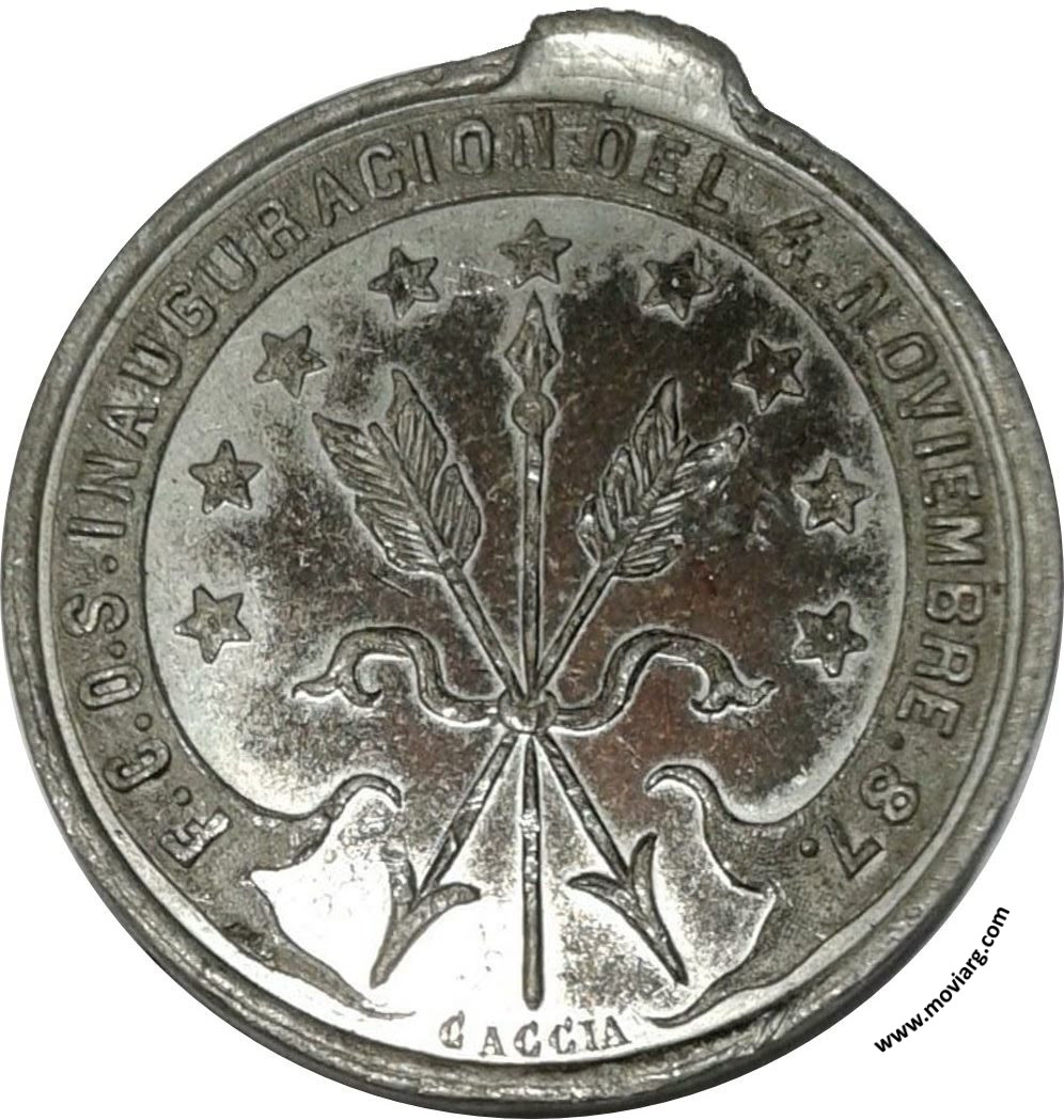 | Año: 1887 Ferrocarriles Metal: Peltre - Rotación: ~12hrs Grabador: Santiago Caccia | |