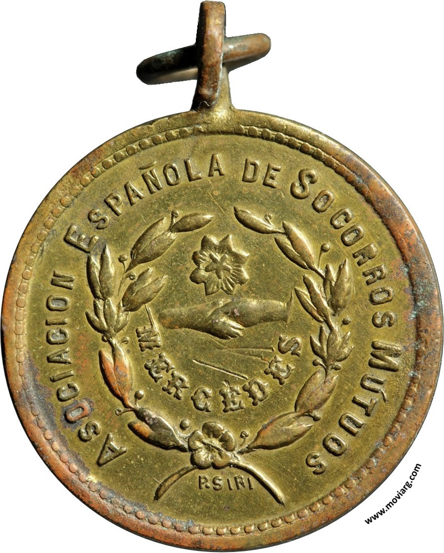 Anverso: ASOCIACION ESPAÑOLA DE SOCORROS MUTUOS / MERCEDES. Firma: P. SIRI Reverso: FIESTAS DE LA ROMERIA ESPAÑOLA / DIAS / 2, 3 Y 4 / DE / FEBRERO / 1888. Firma: (I) Referencia: | |