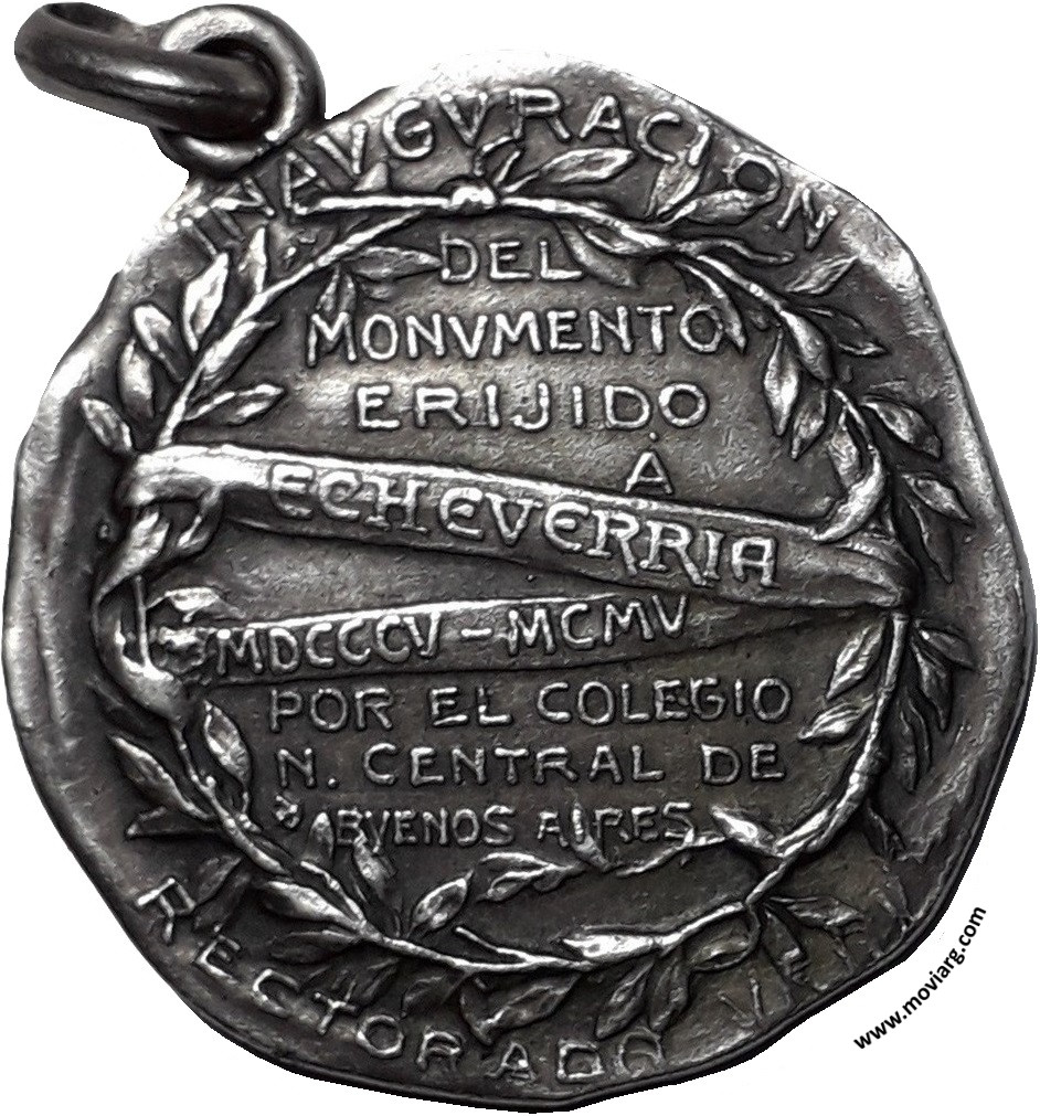 Colección MDS Anverso: [ PLATA ]Reverso: INAUGURACION / DEL / MONUMENTO / ERIJIDO / Á / ECHEVERRIA / MDCCCV - MCMV / POR EL COLEGIO / N. CENTRAL DE / BUENOS AIRES / RECTORADO VRAV Referencia: | |