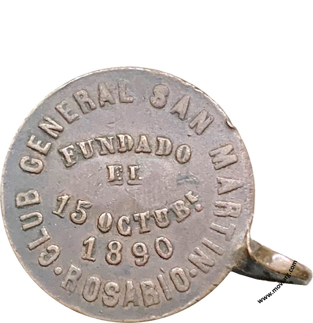 Anverso: CLUB GENERAL SAN MARTIN / ROSARIO / FUNDADO / EL / 15 OCTUBRE / 1890 Reverso: U.C.R. Campo: [ 96 ] Referencia: | |