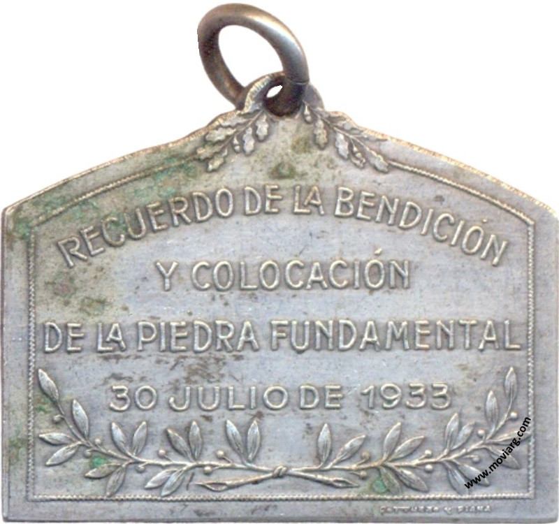 Anverso: HOSPITAL DE CARIDAD / PILAR ( SANTA FE ) Reverso: RECUERDO DE LA BENDICIÓN / Y COLOCACIÓN / DE LA PIEDRA FUNDAMENTAL / 30 JULIO DE 1933. Firma: GOTTUZZO Y PIANA Referencia: | |