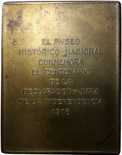 Anverso: CONGRESO DE TUCUMAN / 9 DE JULIO DE 1816 Reverso: EL MUSEO / HISTÓRICO NACIONAL / CONMEMORA / EL CENTENARIO / DE LA / DECLARACION Y JURA / DE LA INDEPENDENCIA / 1916. Firma: J. GOTTUZZO Y CA. Referencia: | |