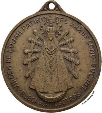 Anverso: VIRGEN DE LUJAN PATRONA DEL XXXII° CONG. EUC. INT. / RUEGA POR NOSOTROS Reverso: XXXII CONGRESO / EUCARISTICO / INTERNACIONAL / BUENOS AIRES 1934. Firma: GOTTUZZO Y PIANA Referencia: | |